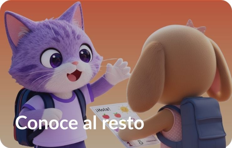 Por eso cada módulo usa Juego de Español Guiado por Personajes™, ayudándolos a tranquilizarse, escuchar, responder y repetir.